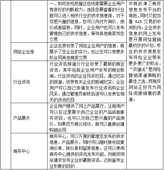 (3)商貿型網站(zhan):供求信息 企(qi)業名(ming)錄 行業咨詢 產品展示 商務(wu)中心